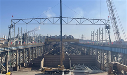 天管廢鋼料場(chǎng)揚(yáng)塵治理項(xiàng)目EPC總承包工程首榀剛架梁順利吊裝
