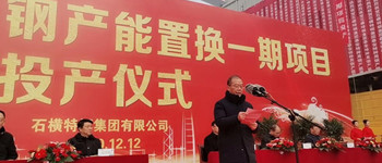 12月12日,董事長魏新民出席泰安特種用鋼產能置換一期項目投產儀式并致辭。
