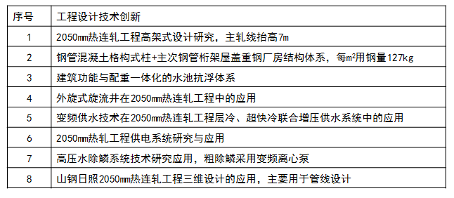 我院在設計過程中進行了多項創新研究,并得以成功應用。多項設計成果獲得2019年度山東省工程勘察設計成果競賽一等獎、山東省冶金科技進步獎一等獎等科技進步獎和勘察設計獎。其中“熱連軋工程高架式設計研究與應用”經專家鑒定為國內外首臺套,技術達到了國際先進水平。