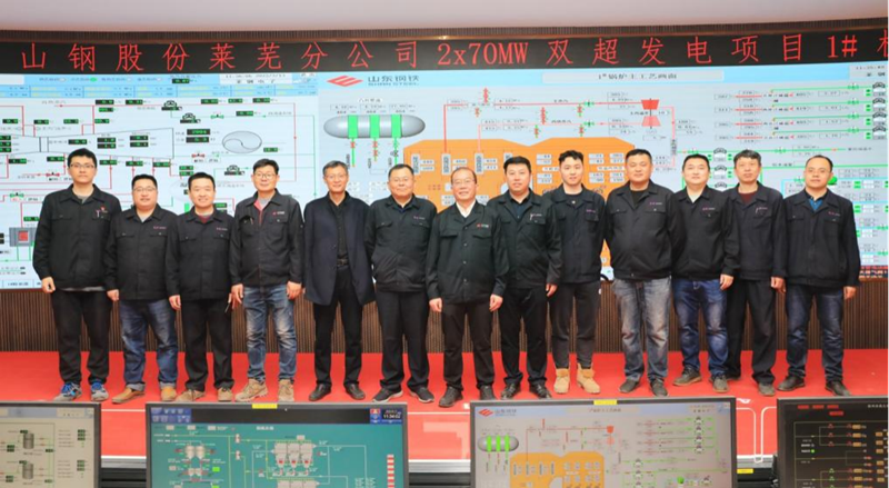 該項目2021年12月12日,1號鍋爐正式點火烘爐。2022年1月6日,汽輪機蒸汽管道吹掃合格。2月28日,汽機發(fā)電機組一次沖轉(zhuǎn)成功。3月10日,系統(tǒng)完成反送電,正式具備了并網(wǎng)發(fā)電條件。3月13日并網(wǎng)發(fā)電成功。這是公司首次總承包建設(shè)、也是山鋼集團首套燃煤氣雙超發(fā)電系統(tǒng)。