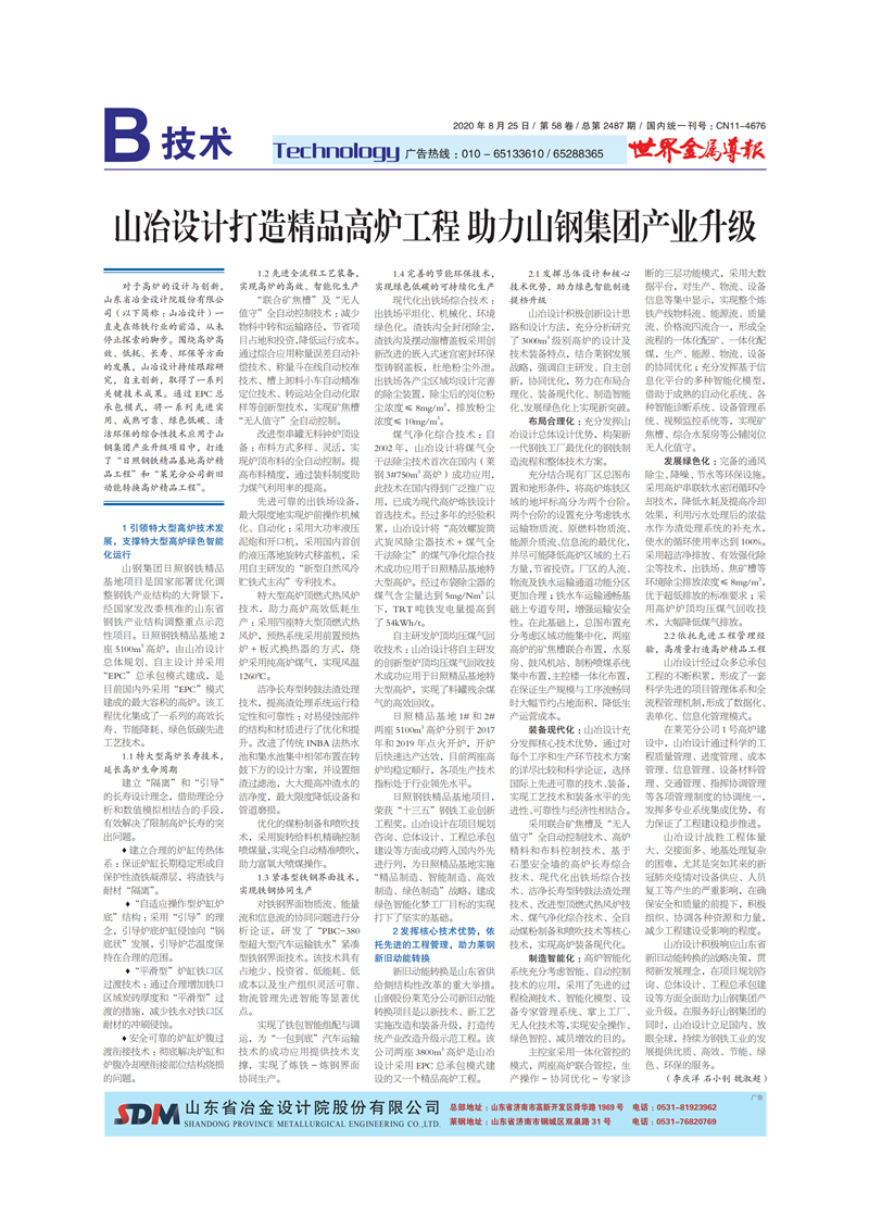山冶設計打造精品高爐工程 助力山鋼集團產業升級
